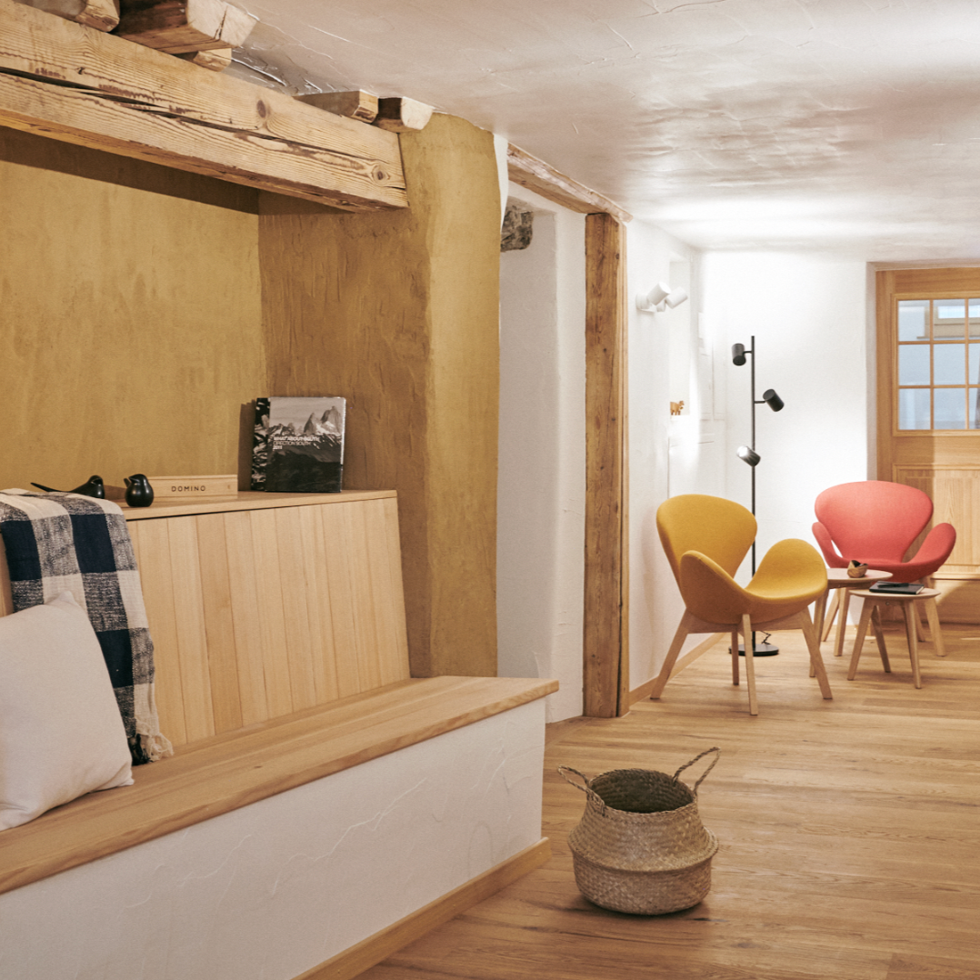 Das historische Gebäude aus dem 17. Jahrhundert wurde 2019 renoviert und ist heute ein Familienbetrieb. Das Gasthaus, das wir an diesem Wochenende exklusiv für uns haben, ist mitten im Dorf. Andeer liegt im Val Schons und ist umgeben von Natur und Bergen und bietet so das ideale Setting für unser Retreat.
